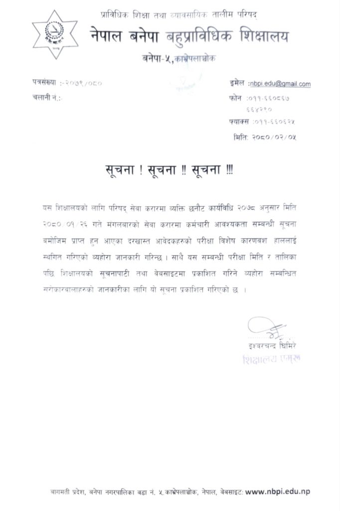 परिक्षा स्थगित सम्बन्धि सुचना