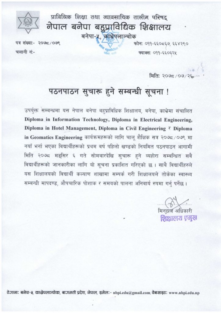 पठनपाठन सुचारू हुने सम्बन्धी सूचना