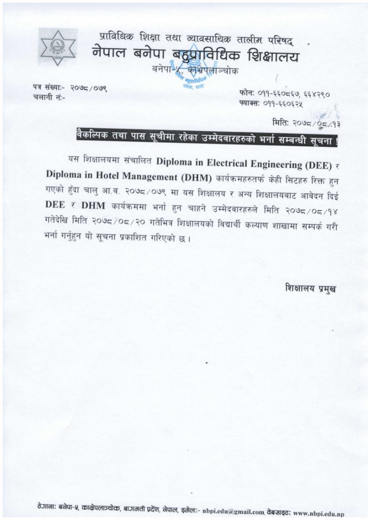 वैकल्पिक तथा पास सूचीमा रहेका उम्मेदवारहरुको भर्ना सम्बन्धी सूचना